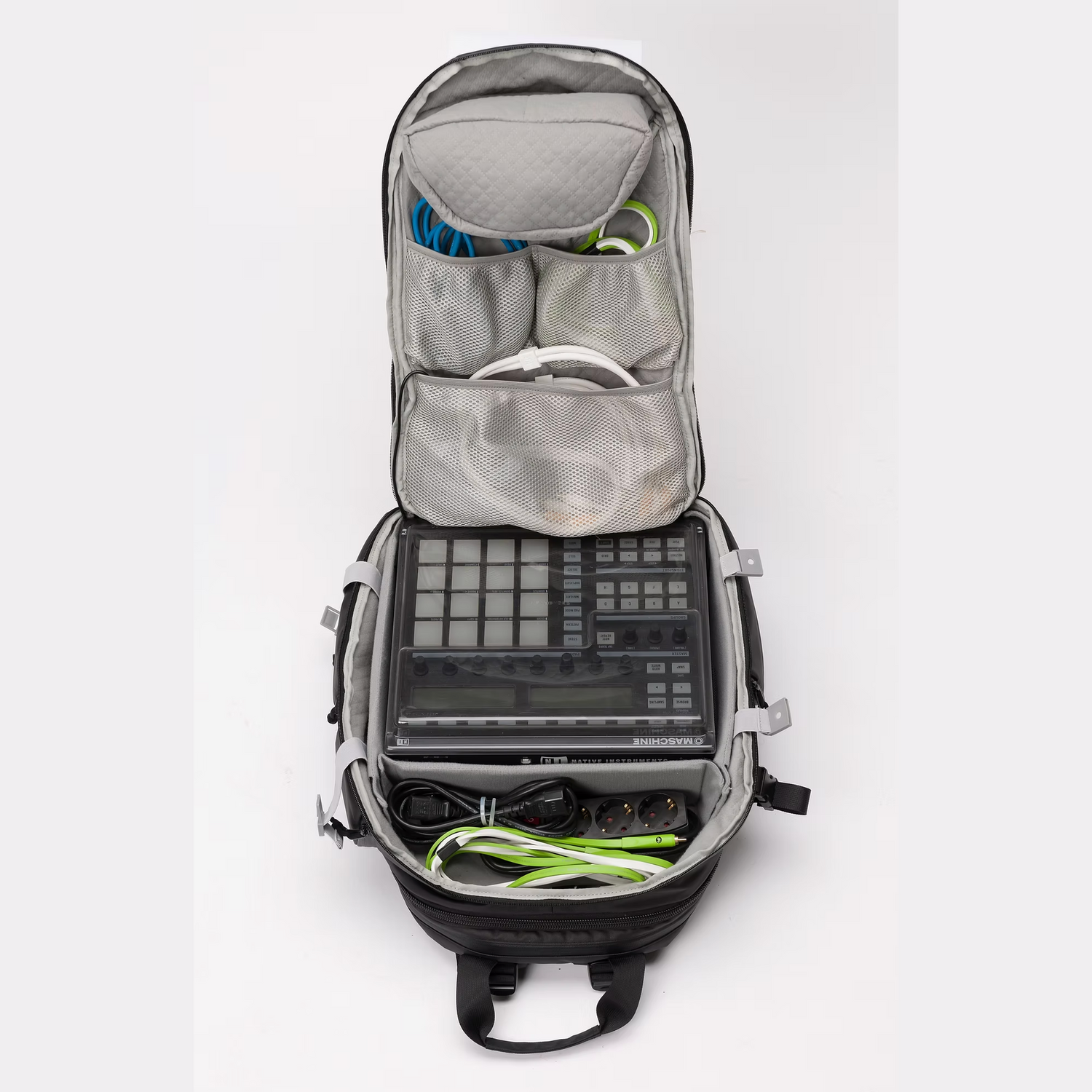 De buitenkant is gemaakt van duurzaam en waterafstotend materiaal, waardoor je apparatuur goed beschermd blijft tegen regen, stof en slijtage. Het interieur is slim ingedeeld en biedt ruimte aan een DJ-controller, laptop tot 17 inch, audio-interfaces, kabels, koptelefoon en accessoires. De gevoerde compartimenten zorgen ervoor dat je gear stevig op zijn plaats blijft en beschermd is tegen schokken.