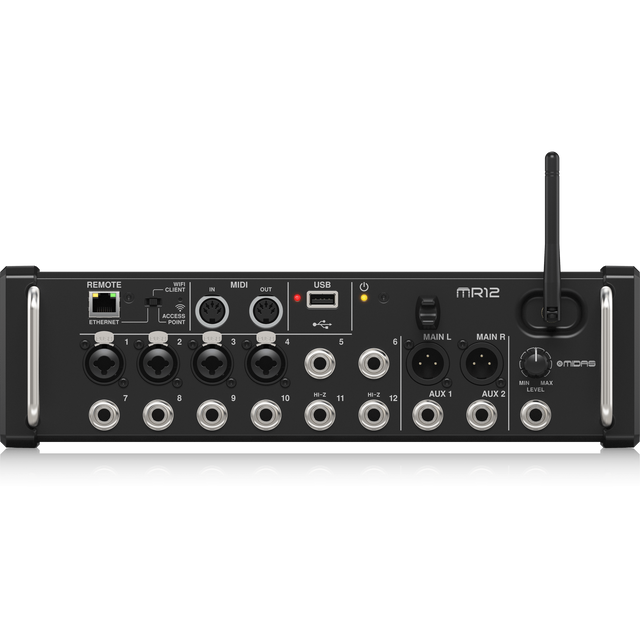 De Midas MR12 biedt een uitstekende combinatie van digitale controle, hoogwaardige audio en maximale mobiliteit, ideaal voor kleine bands, installaties, repetitieruimtes en mobiele geluidstoepassingen.