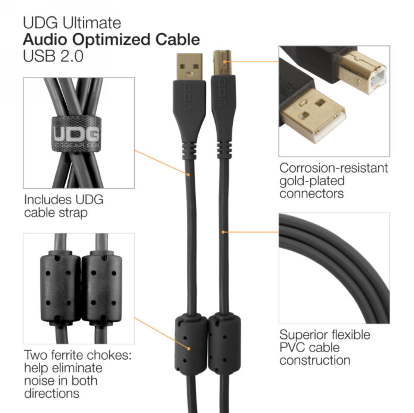 De UDG Ultimate Audio Cable USB 2.0 A-B Black Straight 3m levert een stabiel, ruisvrij signaal dat essentieel is voor nauwkeurige monitoring en professionele audio-overdracht. Of je nu een audio-interface, USB-microfoon of instrument aansluit, de kabel garandeert betrouwbare prestaties zonder interferentie of signaalverlies.